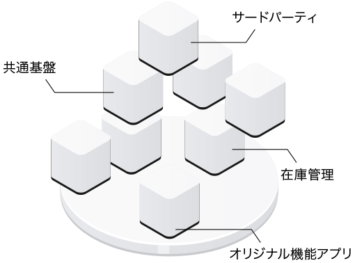 必要なモジュールを選択してカスタマイズしたアプリや他社SaaSと組み合わせることで、最適なシステム環境を構築可能です。